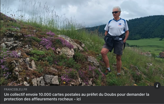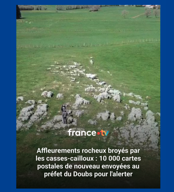 « Vous croyez avoir tout vu, avec la déforestation à marche forcée des forêts primaires, l’extermination des insectes butineurs, les forages au forceps des schistes bitumineux, le bétonnage forcené des côtes à touristes ensoleillées, le colmatage par l’asphalte de milliers d’ hectares de bon humus fertile, l’éventration des terres agricoles jusqu’à l’os par les diaboliques charrues réversibles à quatre socs, les robots exterminateurs de grumes, les gyrobroyeurs, épareuses et autres monstres transformer géants de science sans fiction …. Et bien régalez-vous, la réalité va encore plus loin, direction la Franche-Comté, magnifique territoire fait de cluses, reculées, de vignobles à ses pieds, de lynx, de résurgence plus en hauteur, d’absinthe, de lait, de bois, d’horlogerie et d’hommes. Découvrez la fabuleuse efficacité destructrice du « casse-cailloux ». Un nom à priori sympathique sauf quand était un bagnard en partance de l’île de Ré pour les camps de la transportation de Cayenne ; mais carrément épouvantable quand on découvre, impuissant le résultat de son travail sur les prairies calcicoles semi-sauvages et fleuries du Jura… En mai 2017, dans le Haut-Doubs, un agriculteur a passé plus de 4 hectares de prairie calcicole au casse-cailloux dont près du tiers classé en zone Natura 2000. Le casse-caillou est un énorme tracteur très puissant avec la force de plein de chevaux francs-comtois dedans/ traînant un gros broyeur qui réduit les pierres en poudre. Le but : planter plus de trèfle et de ray-grass pour nourrir les vaches à comté. Ce qui entraîne la disparition des pelouses sèches et avec elles toute une biodiversité : les orpins, la gentiane jaune, le serpolet… mais aussi l’apollon, l’azuré du serpolet, une fourmi rouge, l’alouette lulu, la pie-grièche écorcheur… j’en broie et des meilleurs. Sans parler du relief qui commence à ressembler à celui de la Beauce. Car il faut encore et toujours gagner sur l’espace naturel, raser même la montagne, pour nourrir les vaches qui produiront ce fantastique comté d’appellation un peu incontrôlée quand on apprend cela. Bref l’homme qui ne croit qu’en la technique peut être fiérot d’avoir pondu cette nouvelle arme de destruction massive lancée dans cette guerre incessante livrée à la nature : disparition quasi définitive de toute la faune et la flore qui s’y réfugiaient encore … De nombreuses associations, des scientifiques et des particuliers ont constitué un Collectif « Pour les Paysages du Massif jurassien » pour tenter de stopper ce massacre. Il y a urgence, de nombreux casse-cailloux qui se sont reproduits durant l’hiver, sont prêts à passer à l’action ! De vastes nouvelles prairies de raygrass et de trèfles… ( Cabrel) sur un désert de cailloux, sans qu’il y ait des milliers de roses, que des cailloux broyés. Et vous pensez que ce monde est sérieux. Oui le temps de certains paysages du Jura sont aujourd’hui comptés. Viens, la vache, viens l’abeille on va jouer au casse-cailloux ! »